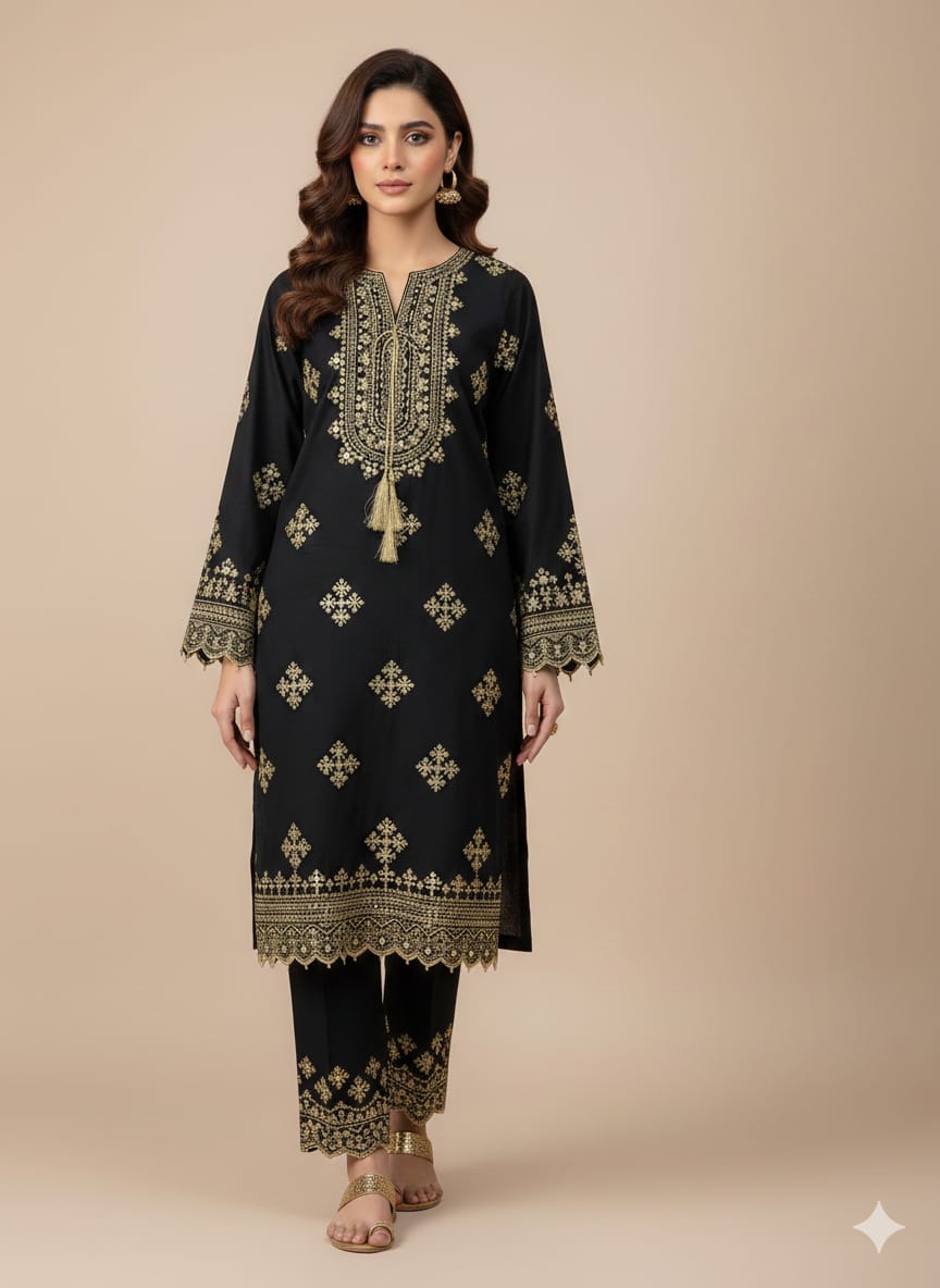 Elevate your wardrobe with this exquisite Luxury Embroidered Multani 2-Piece Suit, crafted from premium cotton for uncompromising comfort and breathability. Featuring intricate embroidery work that showcases masterful artistry, this piece embodies sophistication and refined elegance. The generous 5-meter cutting ensures a flattering, graceful drape that moves with you effortlessly. Perfect for spring and summer occasions, this suit combines traditional craftsmanship with contemporary styling. Ideal for those who appreciate quality fabrics and meticulous detailing in their everyday wear.